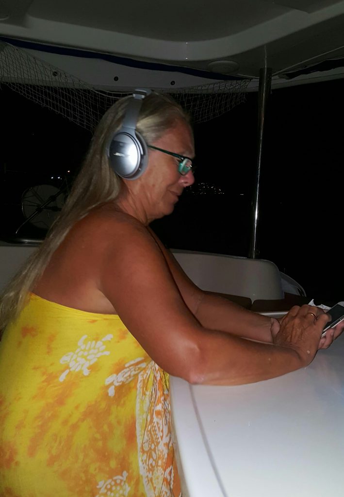 Etter noen timers seilas, var vi tjoret fast på plass E2 i Rodney Bay Marina. Dette er første gang vi ligger i marina siden ARC’en. Merkelig følelse. Men det er lettere å pynte seg og gå i land. Og det gjorde vi på kvelden. Middag på «Bosuns – Thai One On».
