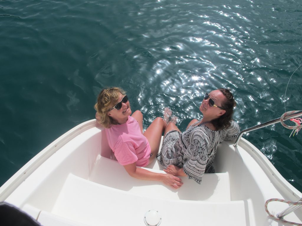 Men det tok ikke så lange tiden før alle var tilbake om bord igjen. Snorkling var visst ikke den helt store greia. Doggete masker og lekke snorkler. Ikke så veldig hyggelig. Men Christin syntes visst det var helt greit morsomt, for hun la ut på tur inn mot revet igjen uten å si ifra. Jeg fikk lettere hetta da jeg ikke fant henne om bord, ikke rundt båten og ikke i nærheten av båten. Heldigvis er hun et smart menneske og skjønte at jeg lette etter henne. Så hun vinket fra revet. Lettelsen var ubeskrivelig.