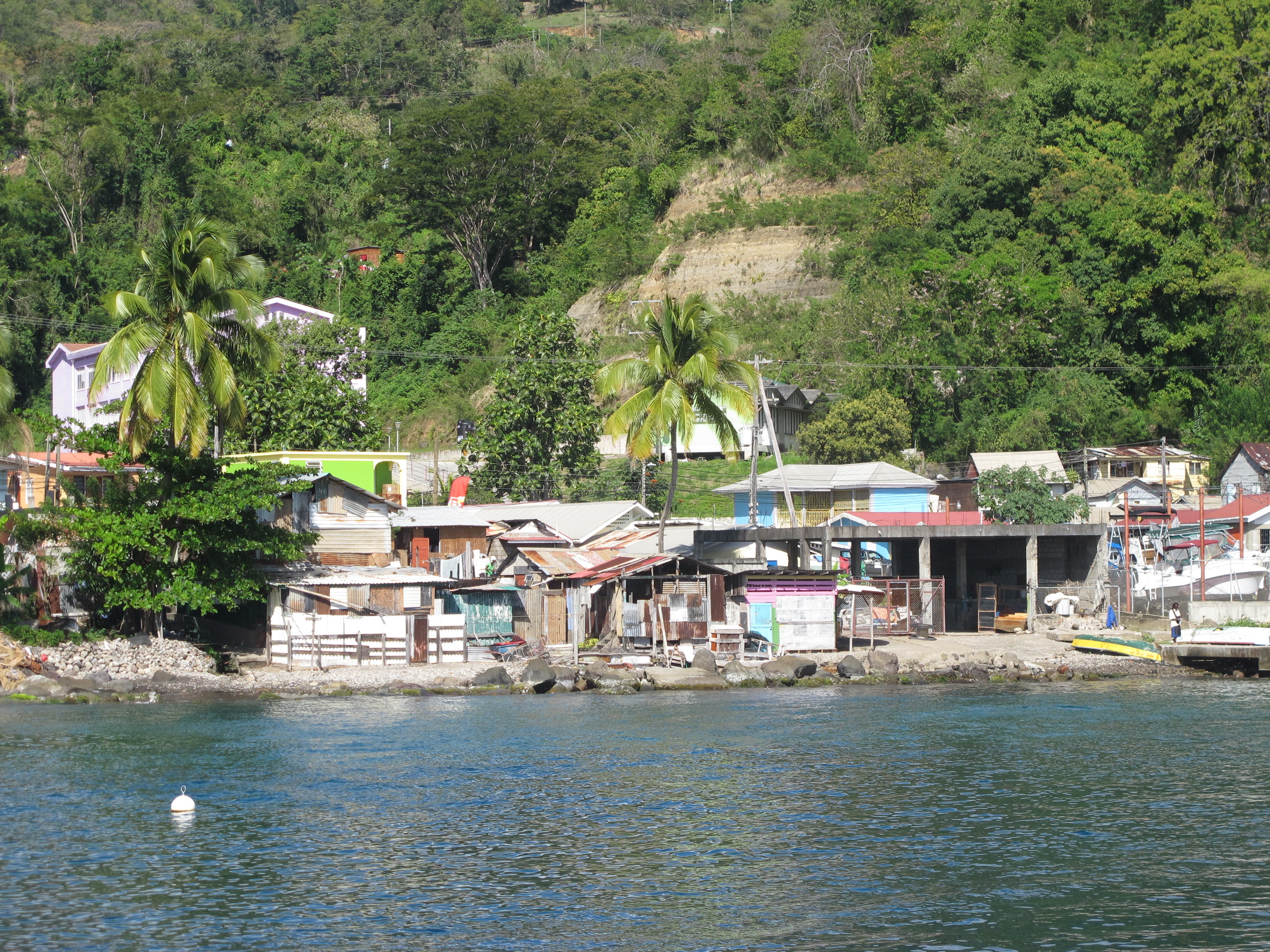 Derfor heiste vi ankeret tidlig og reiste videre sørover. Hadde tenkt å gå til Trois Islets, og forsøkte oss først der. Jeg skjønte ikke at noe var galt, før kapteinen ble stram i maska og Numa sneglet seg fremover i lusefart. Kjølene hennes lugget fremover over bunnen, men heldigvis fikk Steinar lirket henne ut uten ytterligere hendelser. Vi kastet ankeret i Anse Mitan isteden.