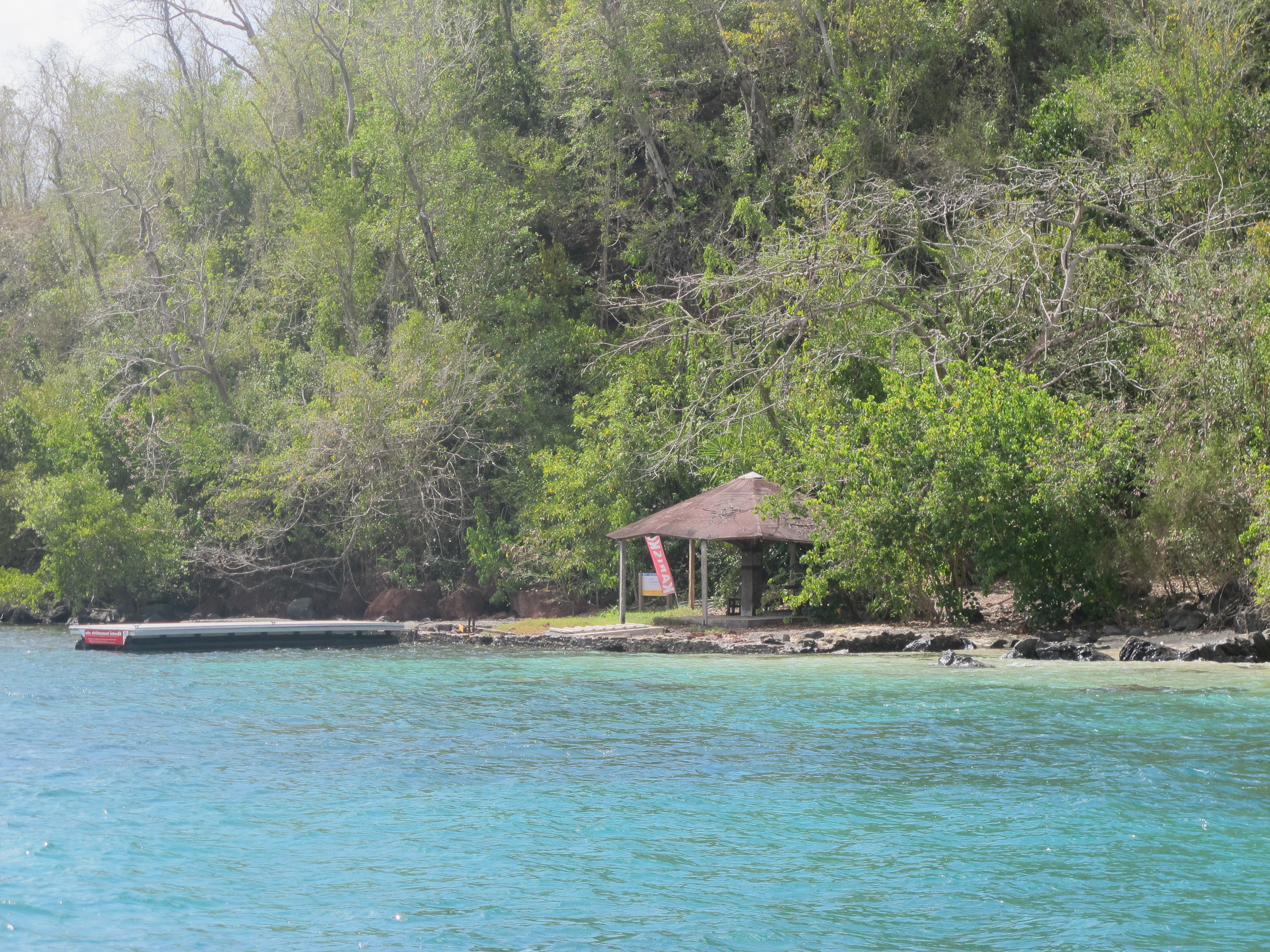 Han er security i bukta, og fortalte at vi ikke trengte å sjekke inn siden vi skulle reise videre i morgen tidlig. Etter at han etablerte security i bukta, er det slutt på innbrudd i båtene, og seilerne har begynt å vende tilbake. Et helt fantastisk prosjekt som er godt for øya. Han kom også utom på kvelden og spurte om alt stod bra til med oss. Service. Tipp topp. Vi betalte for bøya med ca. kr. 150,- og en pils.