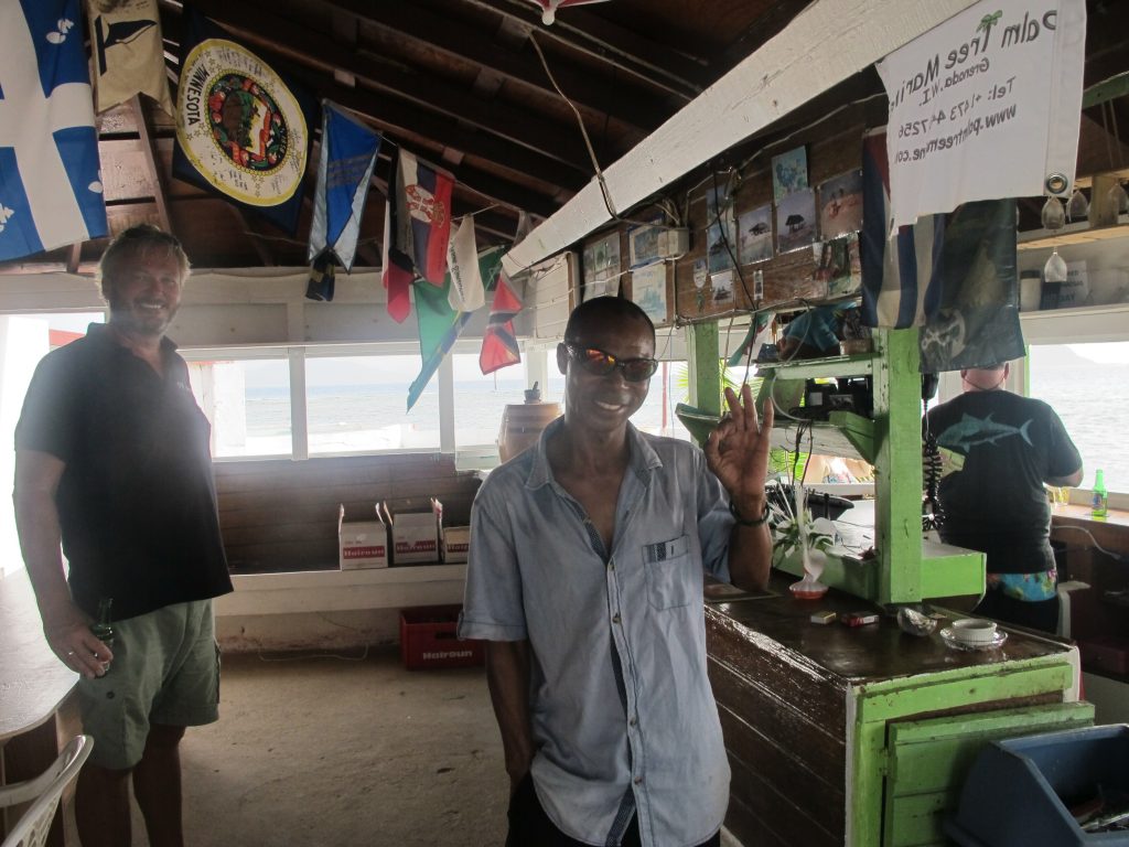 I Prickly Bay Marina er det underholdning av ett eller annet slag hver eneste kveld. Fredag er steel band etterfulgt av et lokalt band. Vi måtte selvfølgelig inn og se. Selv om vi gikk glipp av steel bandet, så fikk vi gleden av å oppleve det lokale «smørbandet» må jeg kalle det. Skikkelig musikk for gamle seilere 🙂