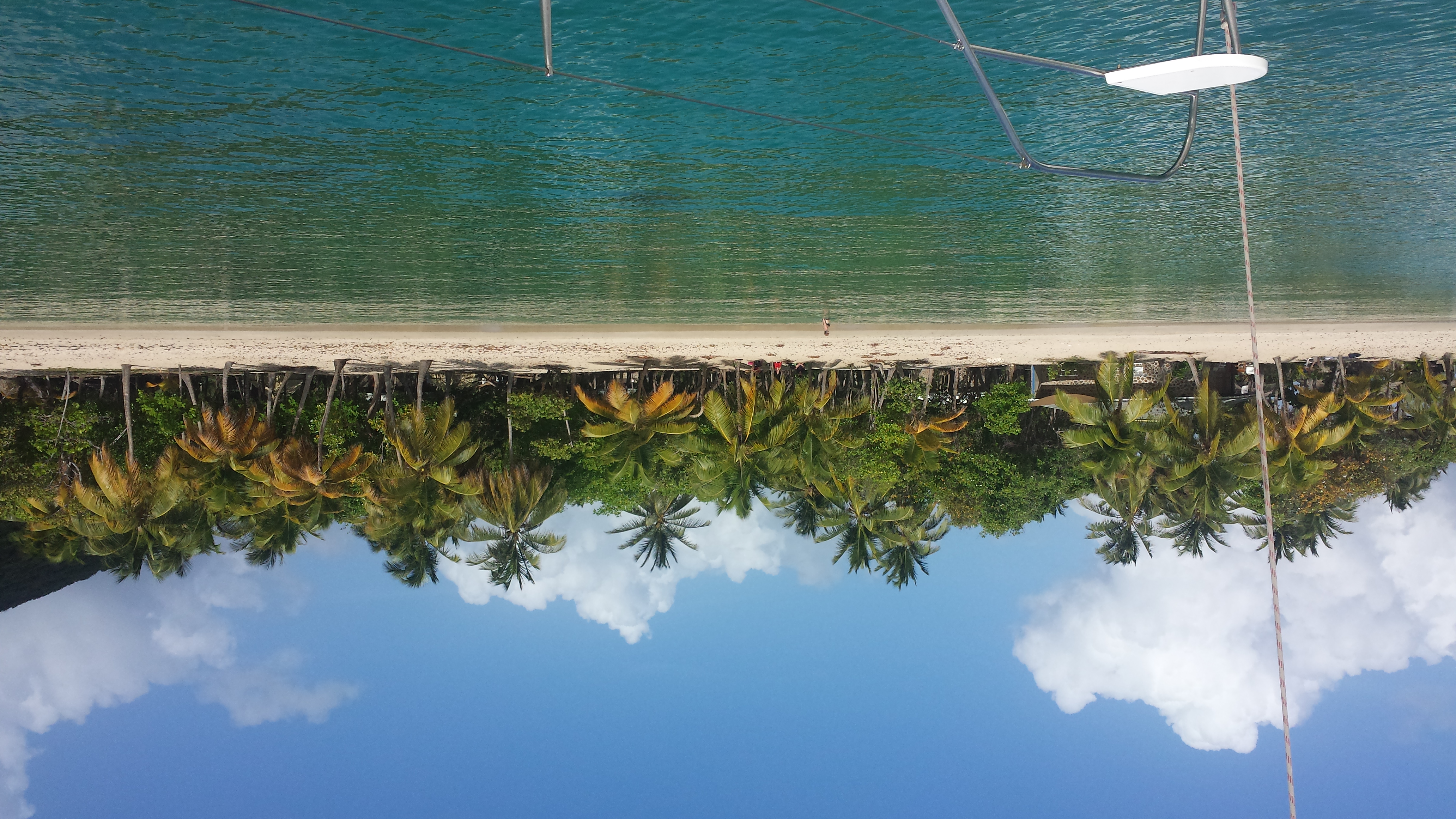 I dag hadde vi lyst til å prøve de nye snorklemaskene. Vi ligger bare 50 meter fra land, så det er ikke lange svømmeturen. Men klaustrofobien kom og tok meg, og Steinar fikk vann i øynene. Så vi bare svømte til land uten noe mere dikkedarer. Vi var på jakt etter en kokosnøtt som hadde begynt å spire. Jeg ønsker meg en palme om bord, så hva er bedre enn en spirende kokosnøtt. Vi fant selvfølgelig ingen. Alle var kakket i stykker. Men vi fikk oss en fin tur langs begge strendene. Denne dagen var det 33,7 varmegrader, så da vi kom tilbake til Numa orket vi ikke stort annet enn å rulle oss ut i vannet igjen.