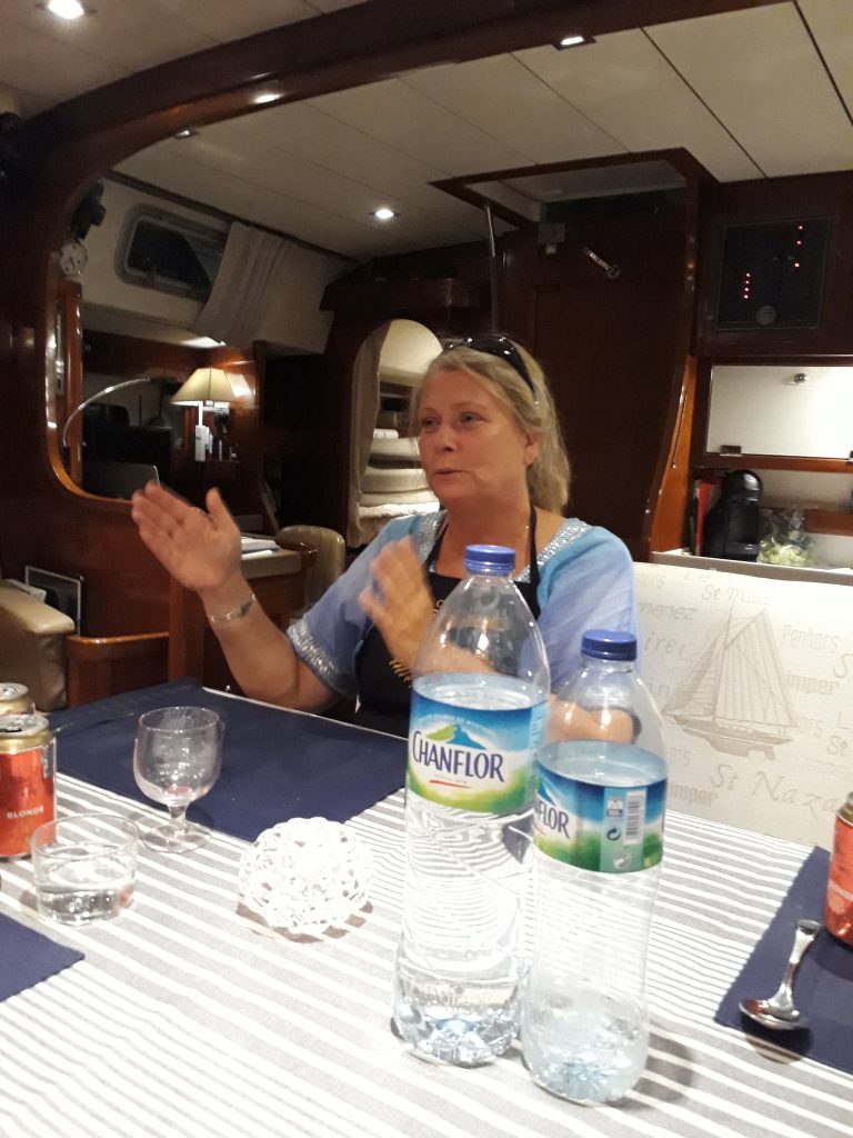 Så var det å heise ankeret igjen, og det går som en drøm med den nye kjettingen. Vi hadde en flott tur over til Anse a l’Ane. Med en gang vi kommer inn i Baie de Fort de France pleier det å blåse mye. Også denne gangen. Men gjestene våre synes det var deilig å seile, så da gjorde vi det. Inger og jeg satt forut og fikk oss en skikkelig fin jenteprat. Lett å prate med den jenta ja.