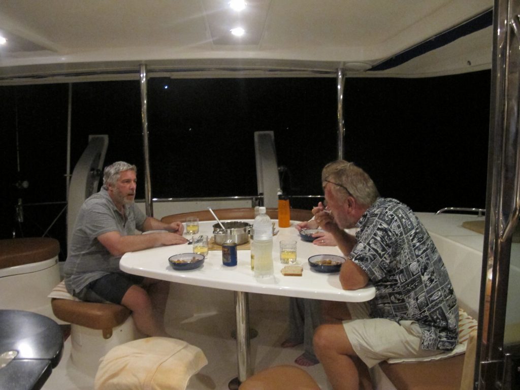 Å hoie rundt på stranden og drikke og oppføre seg som tullinger er noe vi har kommet over for VELDIG mange år siden. Ikke at det skjer så veldig mye av det her i Petit Anse. Men for sikkerhets skyld så fortet vi oss tilbake til «Numa». Der lagde Matthew middag til oss.