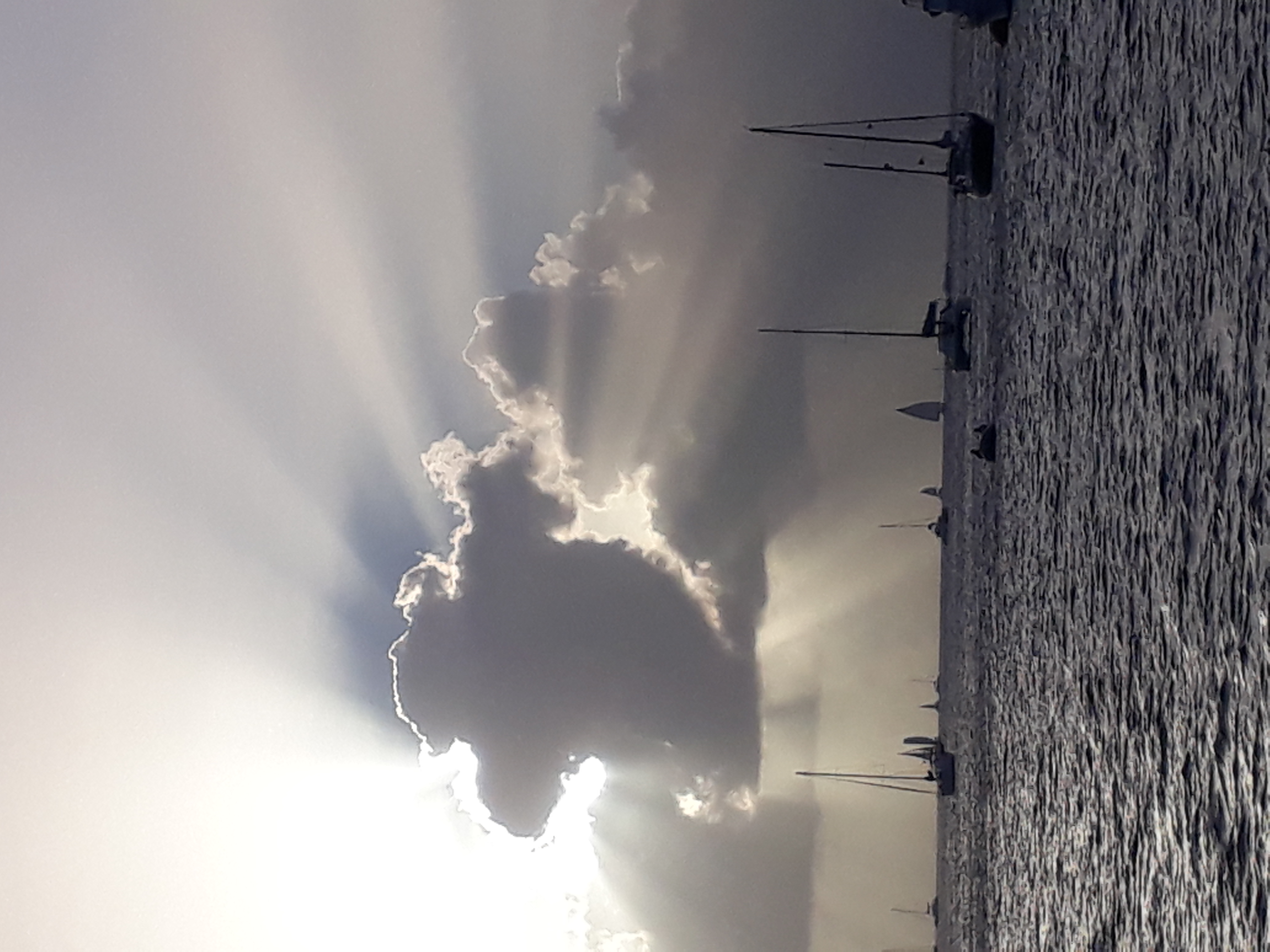 Selv om Fort de France er en fin ankringsplass, er det litt skvulpete på grunn av alle fergene som går frem og tilbake. Så etter hvert fikk vi opp ankeret, og rett før solnedgang var vi atter en gang ankret opp utenfor Sainte-Anne.