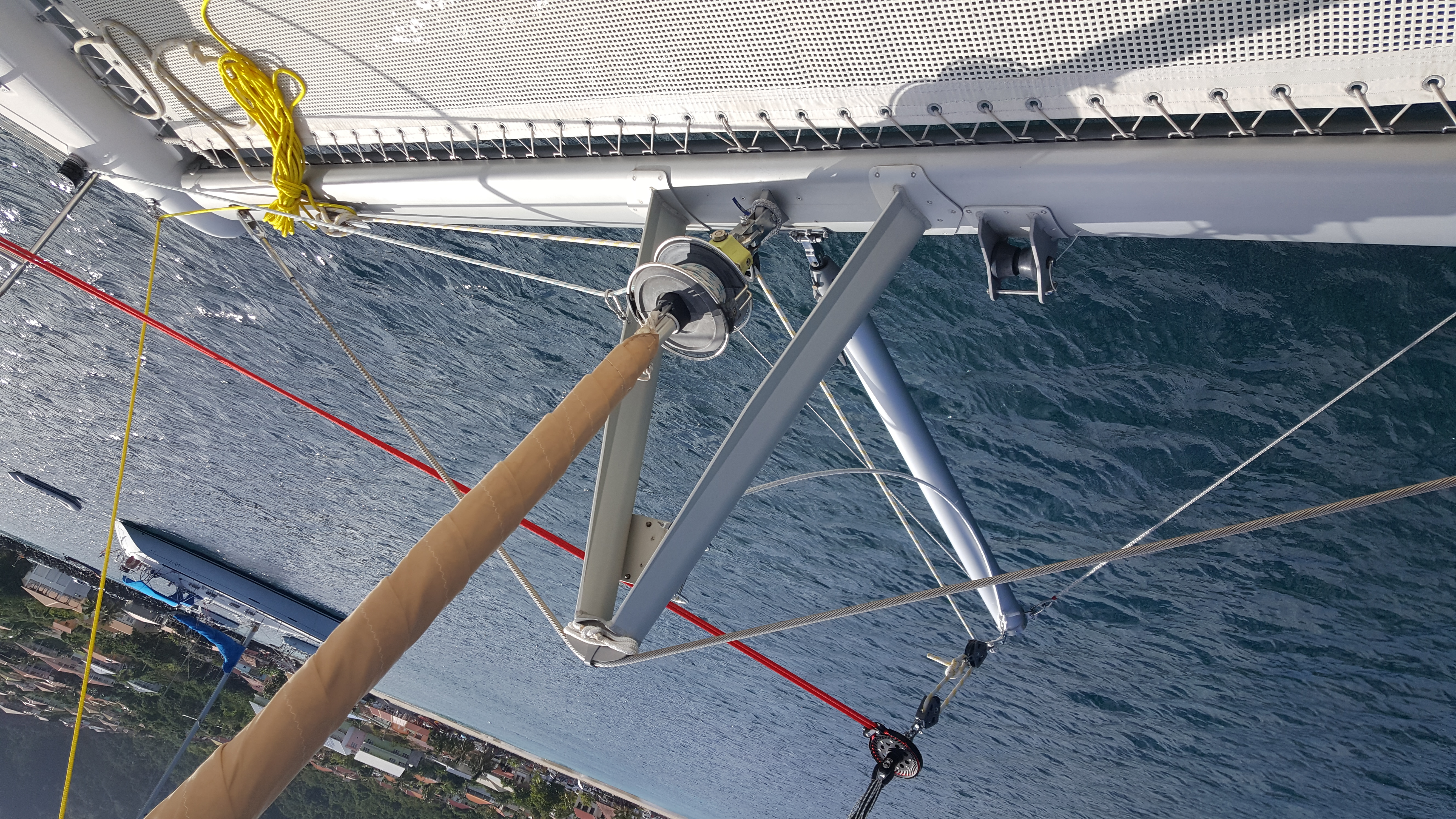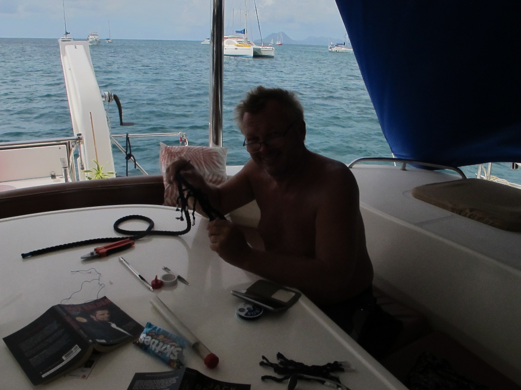 Men før alt dette kunne skje, hadde kapteinen tatt ut den stinkende gamle kjettingen og lagt den ved siden av ankerbrønnen. Vi hadde fått beskjed om at vi bare kunne dumpe den i marinaen, for noe returordning av kjetting driver de ikke med her i Martinique. Noe vi ikke gjorde (men den forsvant på 700 meters dyp senere).