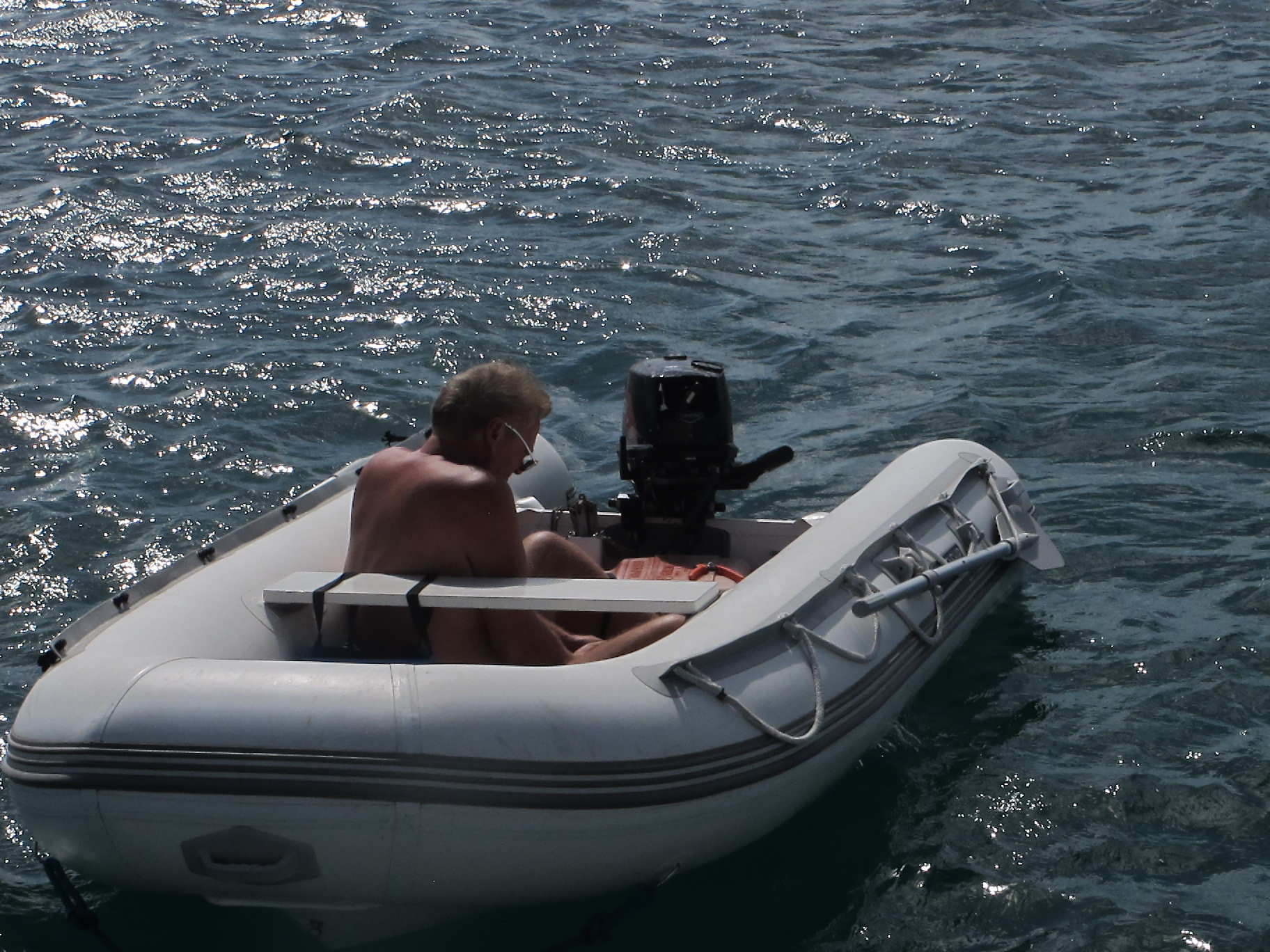 Så det betyr at vi må legge oss inn i marinaen. Det hadde jeg overhodet ikke lyst til, da det er stapp fullt av bråkete mennesker og vi kan ikke bade engang. Selvfølgelig må jeg jo gi meg. Særlig når ny kjetting og nytt seil skal om bord. Tungvint å frakte det i jolle.