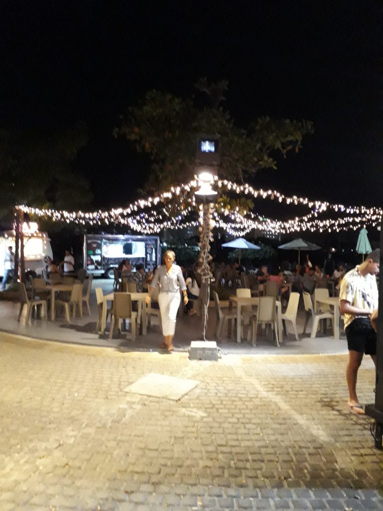 Etter maten ruslet vi litt gatelangs og så på livet. Det er mye liv. Musikk og dans hele veien. Vi var nok litt tidlig ute, for også her går ikke folk ut å spiser før klokka er nærmere 10 om kvelden. Da sover vi.