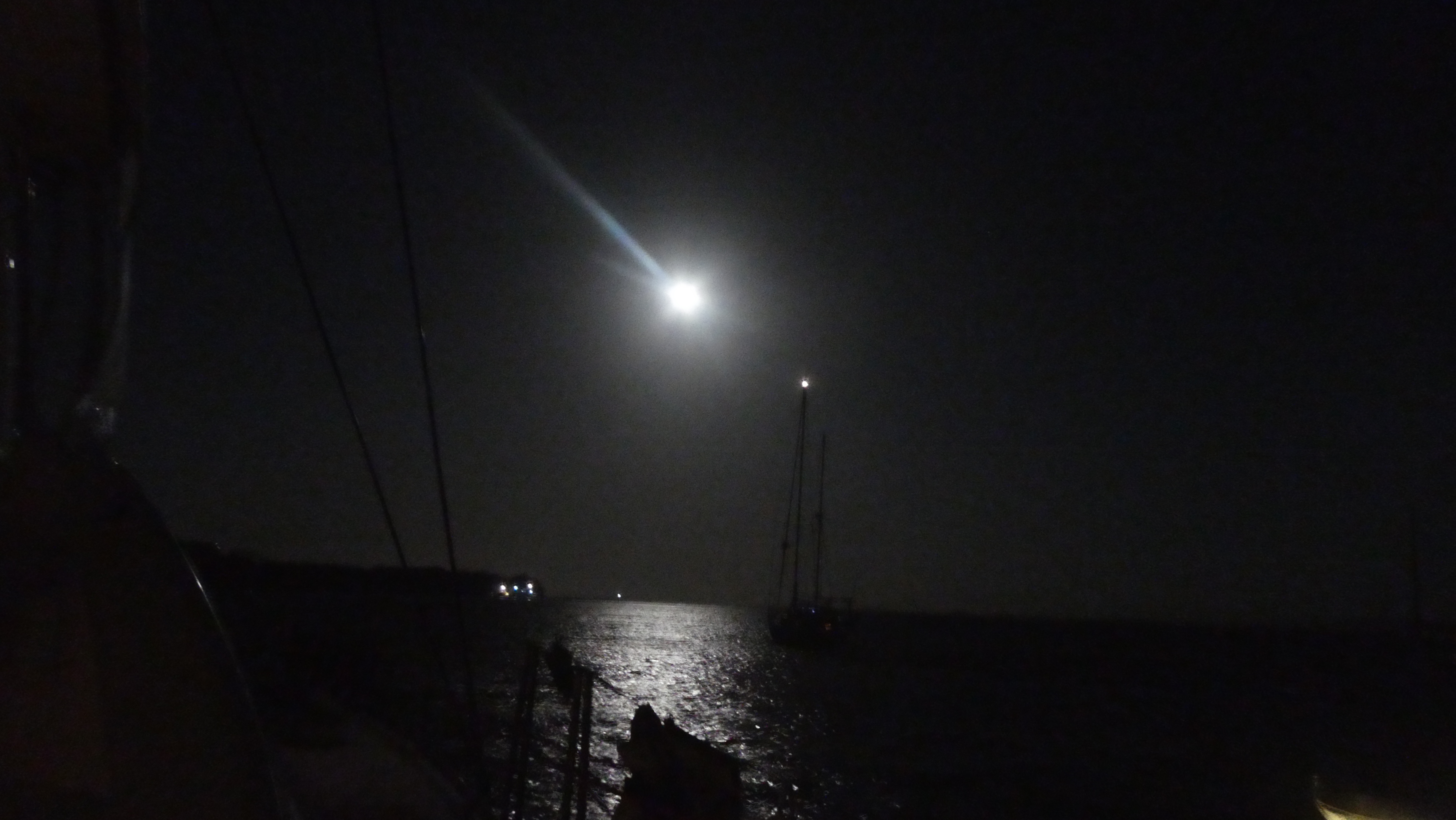 Det var en seilas på omtrent 5 nautiske mil fra leden og frem til ankringsplassen vår. På veien ble vi alle kalt opp av Port Control, og måtte nok en gang stave navnet på båten (ikke vanskelig i vårt tilfelle) og fortelle hvor mange vi var om bord. Vi fikk ankomstnummer 0022.