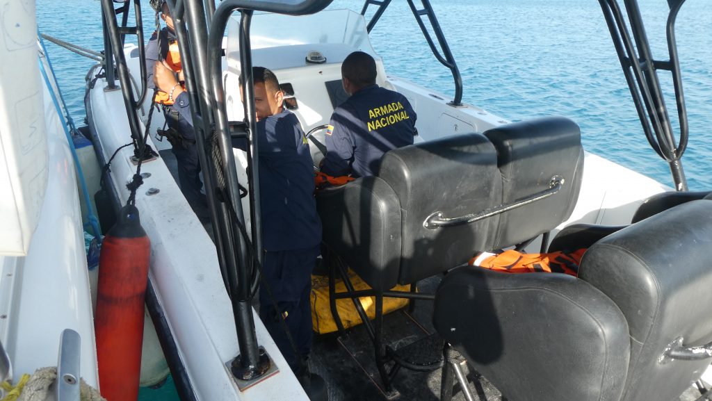 En time før Kathy hadde gitt oss lov til å dra, kunne vi vinke farvel til marinaen og Santa Marta.Kystvakta var også til stede og ønsket oss lykke til på ferden. Og for å sjekke at alle gikk når de skulle. Her er det ikke noe sludder i valsen. Vi må rapportere til kystvakta «Armada» hver eneste dag. De er der for å passe på oss, og er et tilbud til oss i Suzie Too Rallyet. Tror vi.