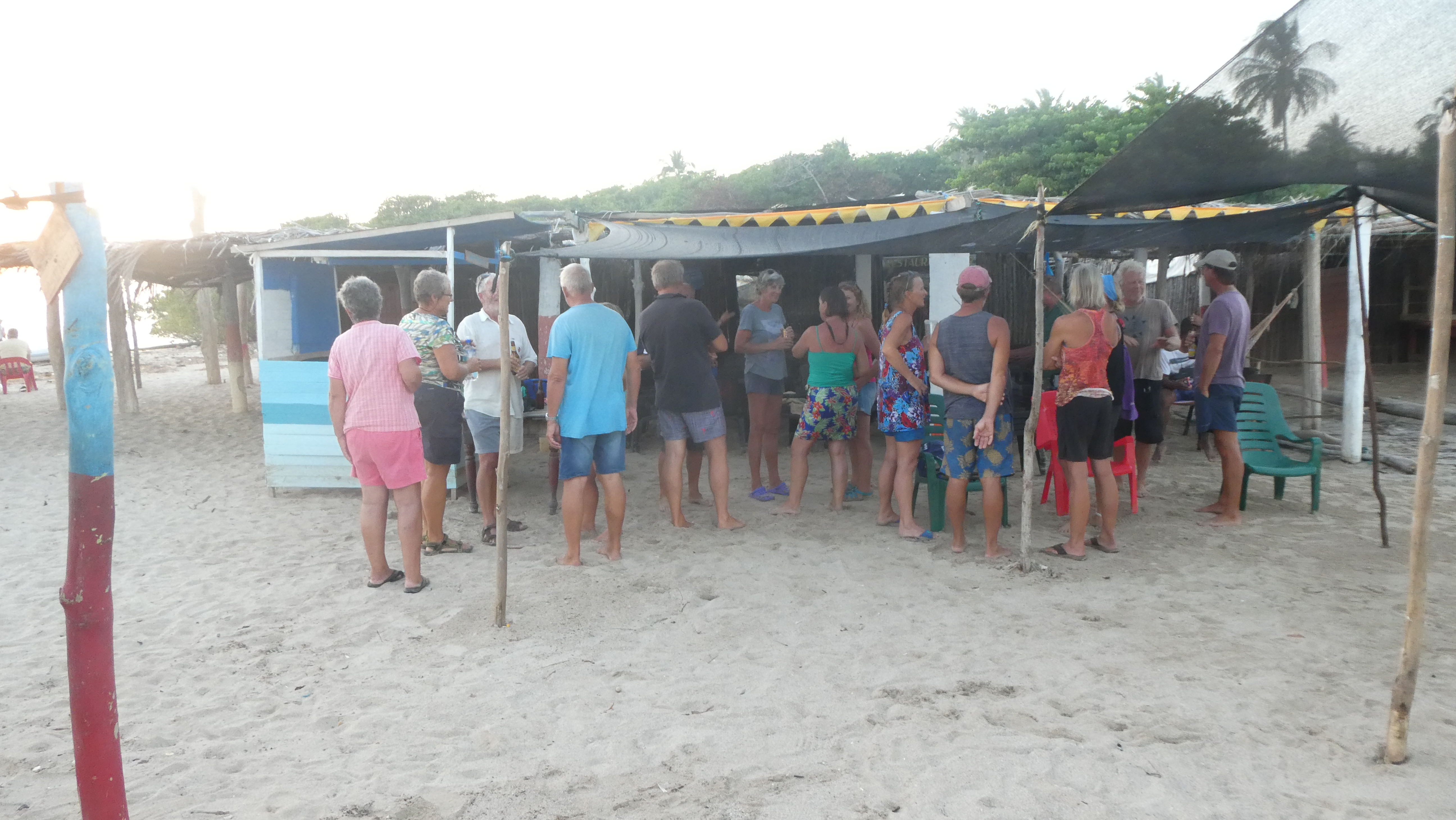 På en bar langs stranden fant vi gjengen. Vi synes det er litt rart å drikke medbrakt pils på en bar, så vi lånte litt penger av «Canapesia» så vi kunne kjøpe en. Etter hvert ga vi blaffen i det og drakk våre egne og betalte «Canapesia» tilbake i pils.Det ble som det pleier. Masse hyggelig prat mens vi drakk solen ned.Mange lokale folk var også på stranden og nøt livet vil jeg tro.