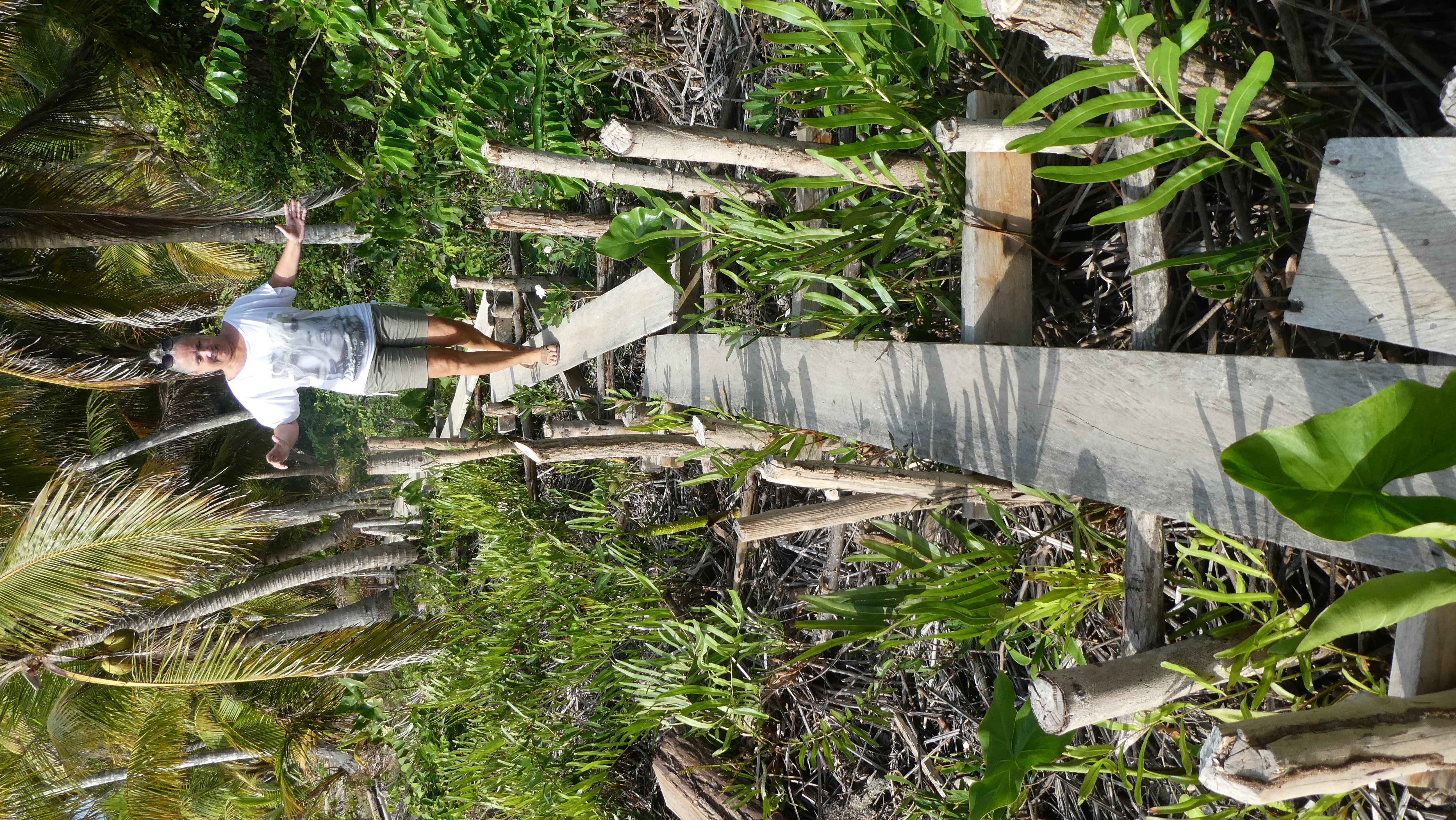 Så er det på tide å utforske øya. Steinar er klar for eventyr.Det var selvfølgelig palmer langs vannet. De er fortsatt de vakreste trærne jeg vet om.Det var palmeskog. Og vi fant ut hvorfor hele ankringsplassen var blitt røyklagt denne morgenen. Alle palmetrær og alle kokosnøtter tilhører en eller annen guna. Det er deres livsgrunnlag, og det er strengt forbudt å ta en eneste kokosnøtt. Skogen blir holdt fritt for småskog og ugress ved å brenne det. Så de hadde ikke brent søppel som vi trodde.Herr og fru «Sisu» på full fart gjennom skogen.Fru «Numa» ønsker velkommen eller noe. Glad for å være på tur er jeg i hvert fall. Det er godt å få bevege seg en gang i blant. Og denne øya var velsignende fri for bakker. Ihvertfall som jeg måtte klatre i.Litt mer karrig terreng. Men vi håndterte det som de tøffe seilerne vi er.Det skal visst være krokodiller her. Noe jeg ikke tror på.Stien til landsbyen gikk faktisk gjennom gravplassen til øyboerne. En litt merkelig opplevelse. Det var stoler og bord og bestikk og tallerkener plassert litt rundt omkring. Samtidig var det åpenbart kristne innslag også. I form av kors mener jeg.De døde var gravlagt i slike hytter.blablaVi nærmer oss landsbyenHerr Sisu og Fru Numa holder inn magen når de blir tatt bilde av. Nå har vi gått i alle fall i 15 minutter, så da må vi vel ha mistet en kilo eller to på veien. Håper vi ikke finner dem igjen.På vei over fotballbanen i utkanten av landsbyen. Fiona, Terry, Carol og meg.Landsbyen i det fjerne. Helt umulig å få tatt bilde uten disse palmetrærne i forgrunnen gitt.Noe sånn som dette har vi aldri sett før. På samme tid fattigslig og rent og pent.Vi vandret gjennom velstelte gater og alle husene hadde høye gjerder rundt en privat gårdsplass. Der holdt visst de voksne til, for det var ingen som «hang» på gatehjørnene. Alle var travelt opptatt med noe.Strandeiendommer. Lenger ut på denne brygga var det offentlige toalettet. Hvert toalett var et hull der ting gikk rett ut i sjøen. Det fikk meg til å tenke på filmen «Slumdog Millionaire».De hadde også sin egen skole.En idyllisk landsby.På vei tilbake fra brygga ble vi praiet av en dame som ville selge oss noe å drikke. Det viste seg å være søsteren til han som hadde servert oss pils på restauranten. Vi kunne velge mellom limonade eller kokosnøtt. Vi valgte kokosnøtt.Broren hakket hull i kokosnøtta for oss, og da var det bare å ta for seg. Til US$ 2,- pr.stk. Alt koster visst 2 dollar her. Det er ikke så lett å ta bilde av folkene her, for det liker de ikke. Vi spurte han her om det var OK, og det var det. Men søsteren ville ha 1 dollar for å bli tatt bilde av. En gang for lenge siden hadde nemlig noen gunaer vært inne på fastlandet og sett at det ble solgt postkort med bilde av dem på. Til 1 dollar pr.stk. Ergo så vil de ha 1 dollar for å bli tatt bilde av. Andre sier det er fordi de tror en bit av sjelen deres blir borte når de blir tatt bilde av, og det vil de ha betalt for. Det er jo også forståelig.Steinar nyter kokosnøttmelk.Det gjør de andre også. Carol, Fiona, Ralph og Terry. På en privat gårdsplass. I San Blas. En helt utrolig opplevelse.Foruten å eie alle kokosnøttene, så driver gunaene også med fiske selvfølgelig. Dette er faktisk farkostene de bruker. Kanoer uthult av trestammer. Jeg trodde virkelig at det var noe som hørte fortiden til. Så der ser man hvor mye man vet.Det var på tide å si adjø, og vi rusler tilbake mot jollene. Stort vakrere kan det jo ikke bli. Skulle bare ønske det ikke var så mye søppel på veien. Men vi tror faktisk ikke det er gunaene som forsøpler, det er plast som kommer med havstrømmene.Dette var en merkelig innretning som vi fikk forklaring på av en lokal mann. Det er en sukkerrørspresse. En gang i året er gunaene på fastlandet og henter sukkerrør. De blir presset i denne pressen, og det lages en alkoholholdig drikk. Kun til bruk for religiøse ritualer. Sukkerrørene plasseres i tvingen nærme palmetreet, og en mann sitter på den lange planken. Dermed blir sukkerrørene presset sammen med stor kraft. Jeg tror det var slik han forklarte.Vi må over en vaklevoren «bro».Godt jeg har litt balanse igjen i kroppen.Vi møtte kjentfolk i jungelen også. Jeff og Di fra «Canapesia» går også en tur på stien. Og hører skogens ro. Men det er garantert ingen gjøk som galer ko-ko her.Hmmmmmmmmmmm. Kunstverk???Vi kom oss velberget tilbake til restauranten, i god tid før middagen ble servert. Innen den tid var vi ikke lenger 6 personer som skulle spise, men halve ankringsplassen. Håper det blir nok til alle.Vi koser oss med en pils før maten. Særlig når «Schloss Ort» spanderte. Som takk for at vi hadde seilt sammen med dem da forstaget gikk føyken. Tusen takk. Jeg tror faktisk at de ikke hadde mer pils igjen i restauranten da vi dro.Det er ikke lov å gå inn med sko.Og så fikk vi servert maten. Vi mistenker dem for å ha delt en, toppen to kyllinger på alle oss. Men vi klager ikke. Det var masse tilbehør. Ris, stekte bananer, bønnestuing, gulrøtter og jeg vet ikke hva alt var faktisk. Godt var det.