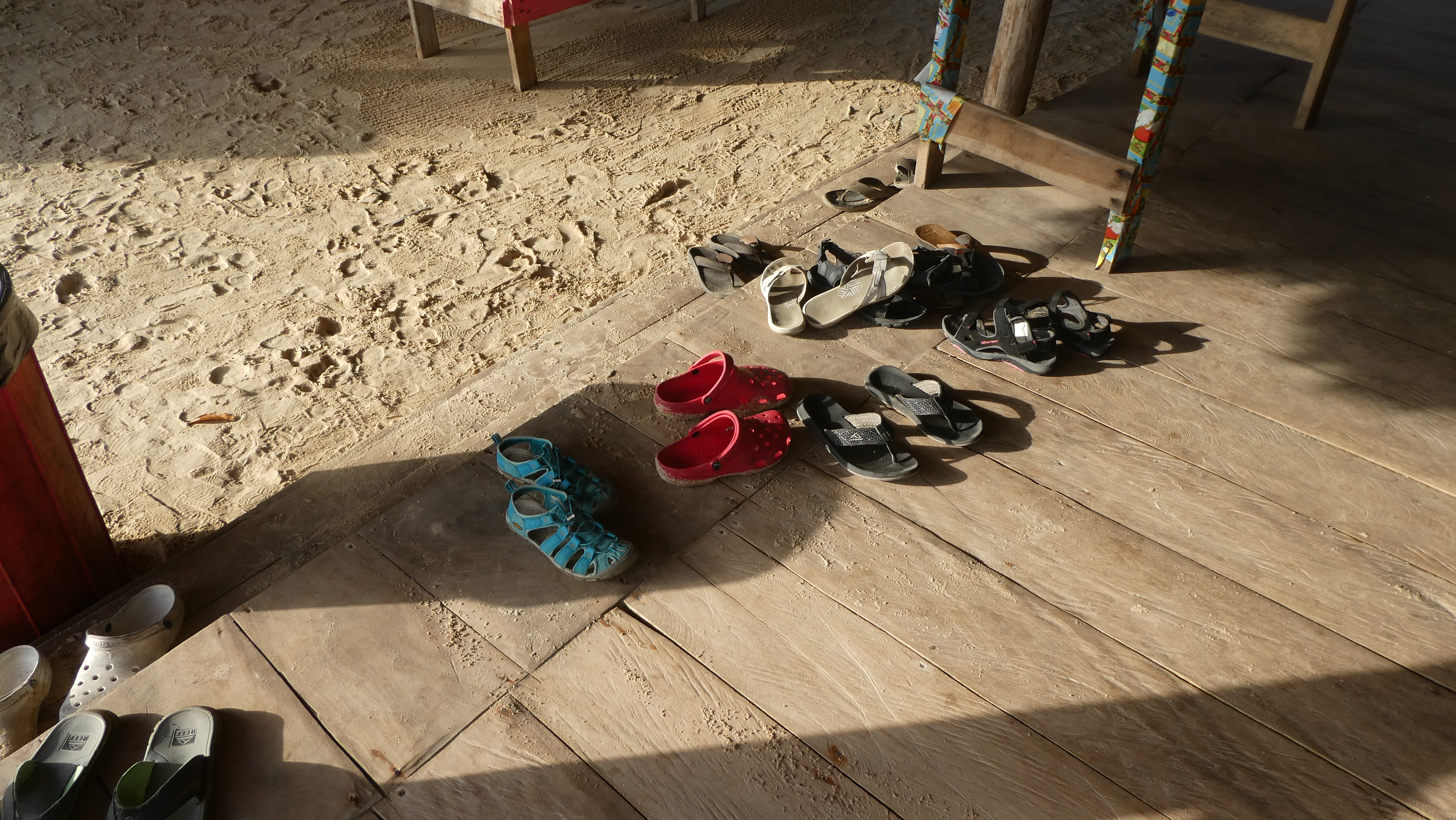 Vi gikk ikke i land engang den første dagen. Av en eller annen grunn var vi helt utslitte. Det ble soving og mat om bord. Ikke mange av de andre i armadaen var i land heller. De satte ikke ut jollene sine engang. Men vi fikk besøk av representanter for gunaene her på øya. Det kostet US$ 10,- å ligge til ankers her. Disse pengene går visst til samfunnet på øya og det er jo bra. Vi betalt med et anstrengt smil.