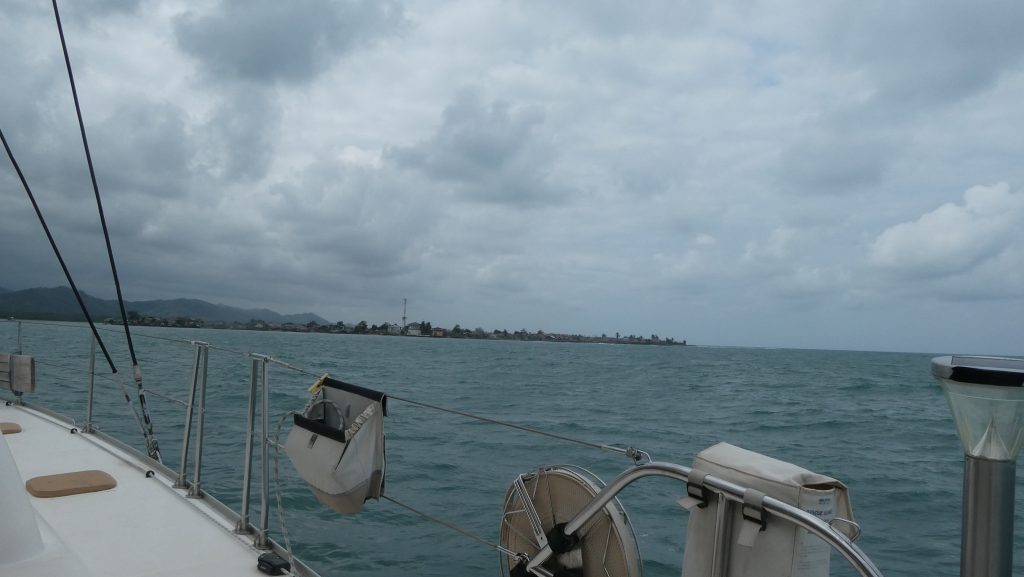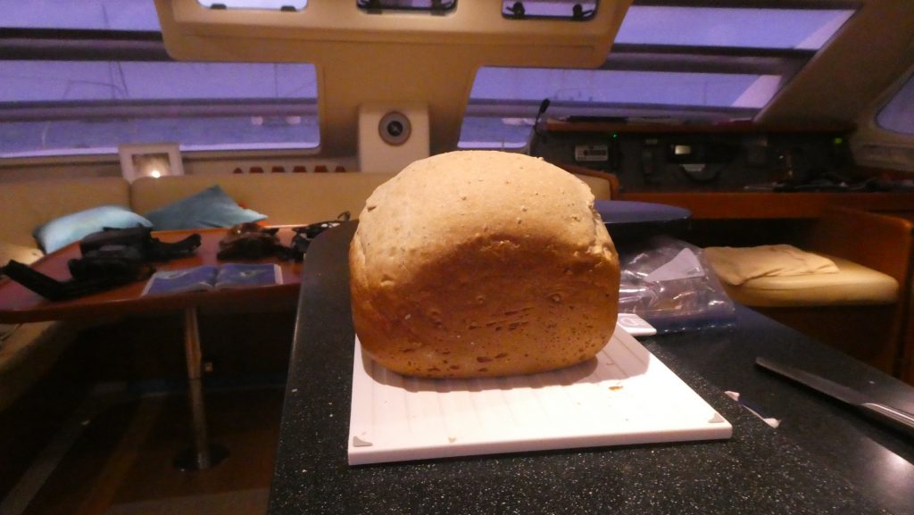 Da vi la ut fra East Holandes Cays kom det enda en norsk båt, så nå er det vel bare nordmenn der. Jeg tenkte jeg skulle lage egg og bacon til lunsj, men det gikk over da vi var klar av revene og bølgene kom for full musikk. «Numa» liker virkelig ikke 3 meter bølger fra siden. Ikke jeg heller. Det ble brødskiver med ost til lunsj.