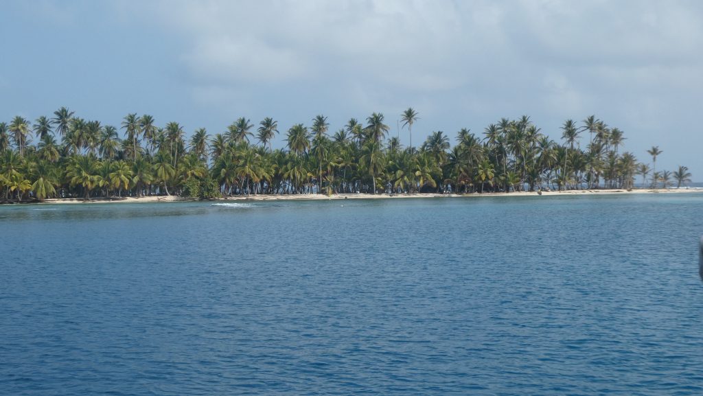 Ved 9 tiden på morgenen dukket Isla Pinos opp i det fjerne. Gunaene kaller den for Tupbak og det betyr «hval». Ganske så logisk, for øya ser unektelig ut som en hval på avstand.«Schloss Ort» har hatt en heller grusom tur. Med røket forstag og ruskete sjø. Så jeg kan tenke meg Jutta og Leo var lykkelige da øya dukket opp og bølgene fikk en mer anstendig størrelse.Det var deilig å kaste ankeret utenfor denne deilige stranden. Denne øya har i århundre blitt brukt av seilere, pirater og fribyttere som et landemerke og tilholdssted. I 1571 planla Sir Francis Drake sitt angrep på Nombre de Dios fra denne bukta. Rart å tenke på at vi kanskje har lagt ankeret akkurat der hvor Francis Drake en gang var. Kult.«Q4» og «Schloss Ort» har kommet seg velberget frem til den første øya i Guna Yala. Nå blir det reparasjonsarbeid på østerrikeren.Fastlandet Panama. Det er ikke lange svippen over til fastlandet. Men Panama lar guna indianerne styre San Blas øyene. Nesten som et land i landet. Men San Blas tilhører Panama.